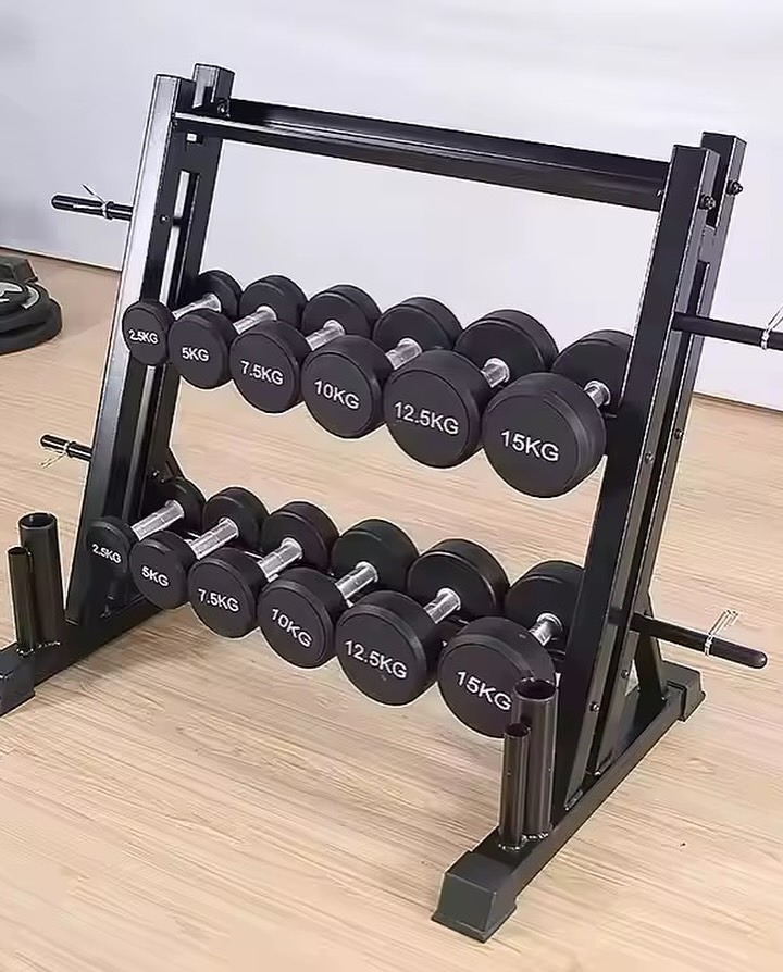 Keep your gym neat, safe, and ready for action with this premium Dumbbell Rack. Constructed from high-grade steel, it features a stable, wide-base design and protective rubber saddles to prevent scratches and noise. Its tiered layout allows easy access to dumbbells of various sizes, making it perfect for strength-training enthusiasts who want efficiency and organization in their workout space.